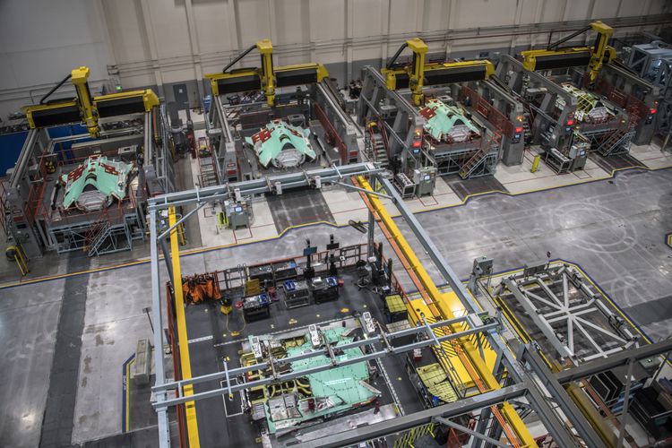 カリフォルニア州パームデールに所在するF-35の中央胴体の統合生産ライン(IAL)において、航空機の設計と高度な技術能力、軍用機生産に対する革新的なアプローチにおけるノースロップ・グラマンの長い歴史が、新しい自動化された製造機械と高いスキルを持つ従業員からなる、この分野では初となる防衛装備の生産施設として結実しました。
